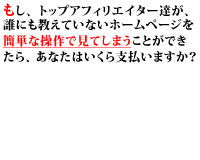話題騒然!超激戦キーワードで儲けているサイトを完全暴露。お買い得バージョン。絶対悪用禁止!トップアフィリエイターのホームページを徹底暴露!絶対に悪用しないでください。